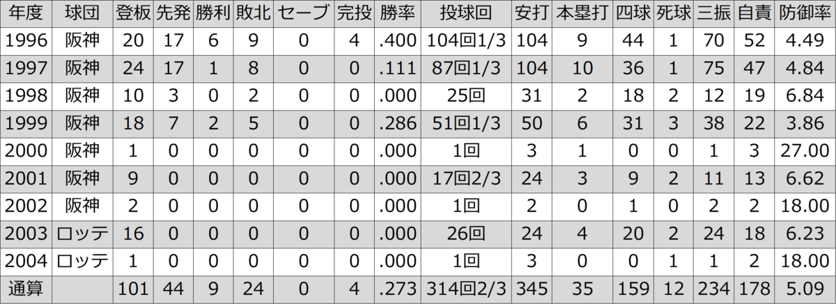 経歴 :尾道商業高校-NKK-阪神タイガース(1996~2002)-千葉ロッテマリーンズ(2003~2004)