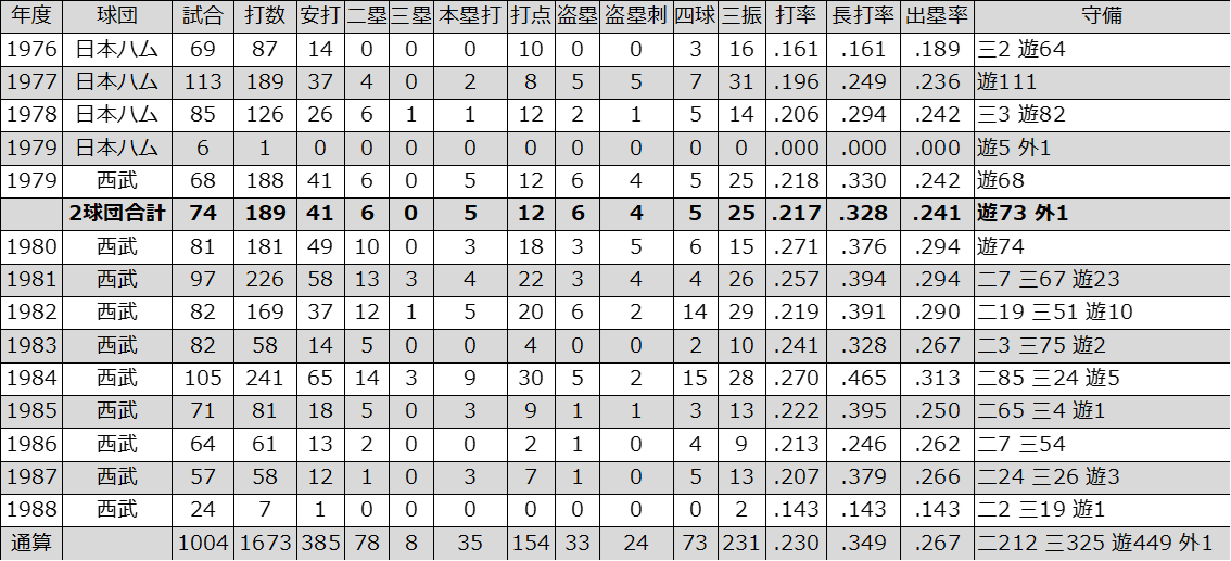 経歴 :PL学園高校-中央大学-日本ハムファイターズ(1976~1979途)-西武ライオンズ(1979途~1988)